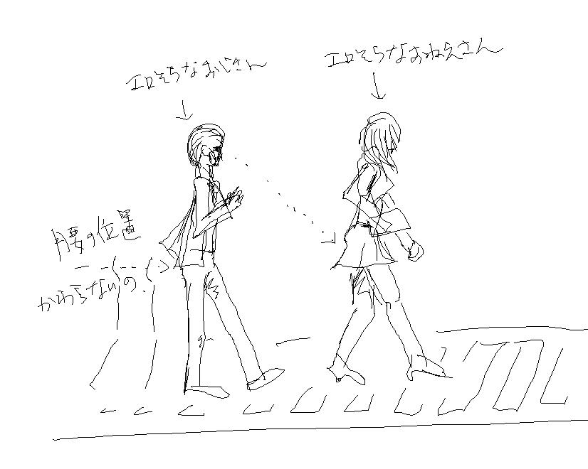 御茶ノ水で信号待ちしてたら変な二人が視界に入ってきたよ 最初はお尻の見えそうな超ミニスカートはいたお姉さん、続くおじさんは腰を引いた変な姿勢でお姉さんとの距離を一定に保ったまま(磁石のおもちゃみたいだった)スーッと平行移動する感じで歩くんだ おもしろいから見てたけど、やっぱり横断歩道渡ってもおじさんはずーっと一定の距離を保ったままお姉さんの後をついて行ったよ 女の人はあんまりお尻とか見せちゃダメだよ~