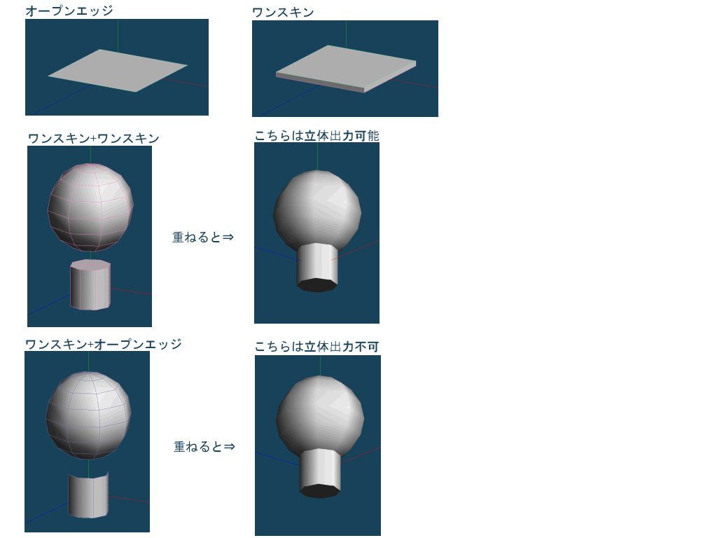 ●ワンスキンオブジェクトは可(少しでも必ず厚みを付けなければならない)