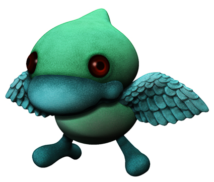 下のを完成させたっす ポリペイントでスプレー使って点描風に仕上げて、更にフォトショで塗料フィルタのオーバーレイです 羽の影はキャビティマスク 球体のディフォーメーションは、SBend使うと尻尾のくいっと上がった感じが一発で出来てうれしい(でも見えないねw) たるんだ感じはグラビティで