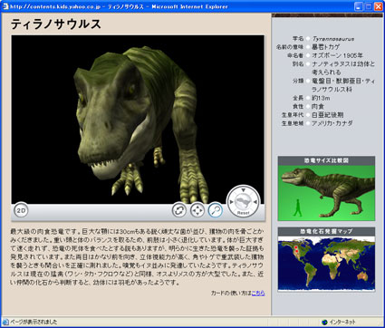 Yahoo!きっず恐竜カード http://contents.kids.yahoo.co.jp/dino_card/list/group/index.html スゴイ時代になってきましたね・・・・・・・・ ローポリだけど3Dでグリグリ視点変えられますよ こどもの見る図鑑とかも3Dビューアー付くようになるのかなぁ その内デジタルペーパーだし