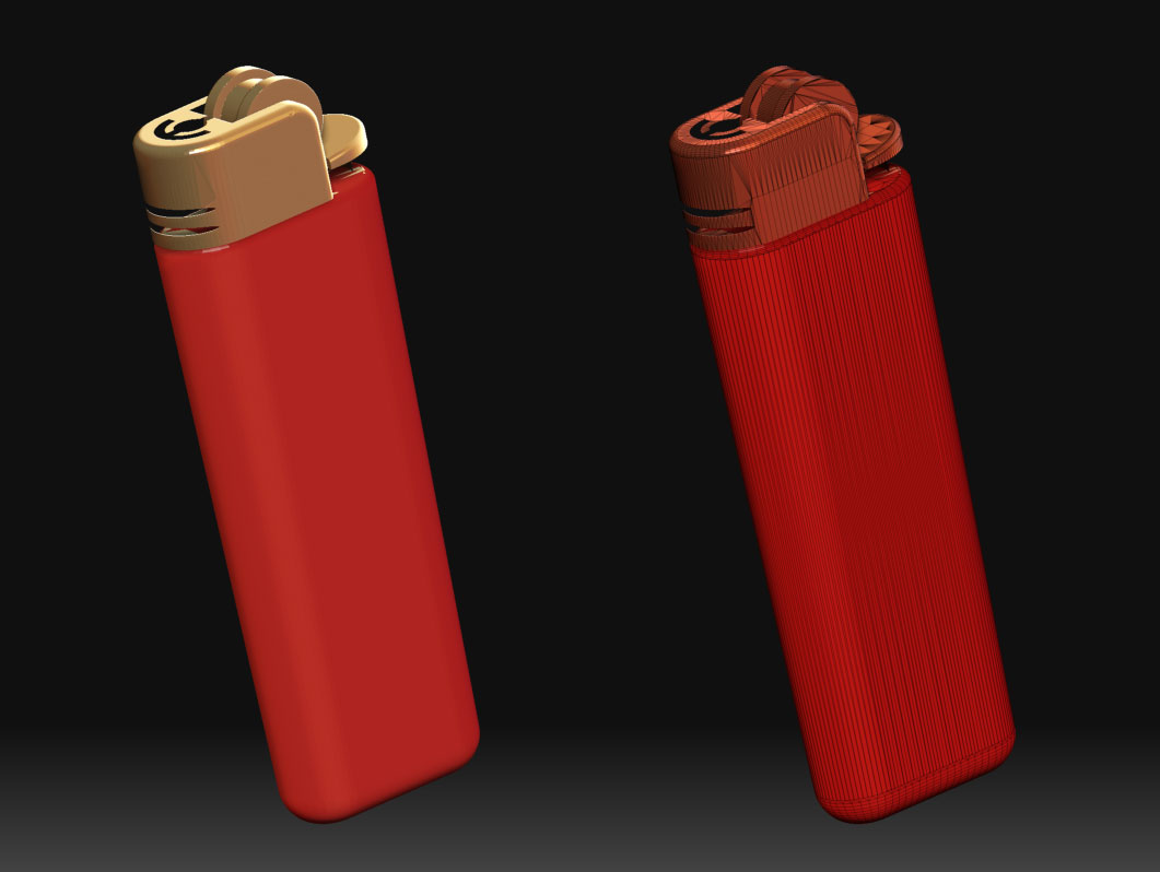 25回のうち1回を使ってしまうワタシ・・・・・・・・・・・・・・ 何もしないでインポートしてみた ライノでエクスポートする時、25回のうち一回を使いますか?と親切に出た! とりあえずZBで開いた ぬぬぬぬぬ やっぱり三角入りまくりなのね 混在しております Devideすると崩壊します・・・・・・・・・・・・ あと、ライノ側で、変形させて置いただけの曲面とか一部裏返ってます(原因不明)
