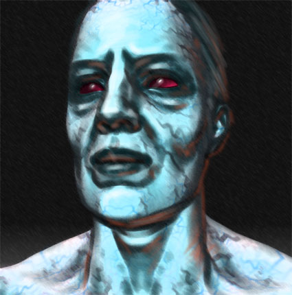 エレメント3.0で申し訳ないのですが・・・・・・・・・・・・・・・・ とりあえず大したことやらないで平面っぽくなった と思う! ↓やったこと フィルタ>こする(50%) ストロークの長さ:7 領域のハイライト:2 適用量:7 これに消しゴムで消しながらハイライトを描き足して? 別のレイヤーで何となくオレンジの反射光を描き、不透明度を85%に落とした ↓元画像 以前デモヘッドにきもはだペイントしたやつ