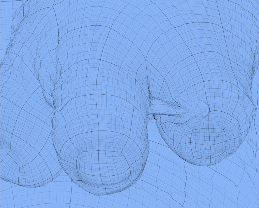 トポロジー貼った後、プレビューするとこんなになったことはありませんか? おいらはしょっちゅうです・・・・・・・・・・・・・・ 色々弄って直すことも検討しましたが、それも上手く行ったり行かなかったり・・・・・・・・・ だからもう、簡単なのは手で直すことにしてみた 確認の為にマテリアルをFlat Colorにして、Frame表示をオンにすると ぎゃぁ 微妙にやだ! 込み入った所やトポロジーが上手く張りにくい所(鼻の穴とか、指の間とか、脇の下とか・・・etc)で起きている気がするのですが、張り直したりしても直る場合がありますが、なってから気が付いた時はそのままな直せるっぽいです 単純明快! 引っ張り出して伸ばす!! Zsubで穴掘って、Smoothで元の流れに引っぱって戻す感じです(形状は作り直す必要がありますねw) とりあえずおかしな食い込みからは開放されたのだ 安心安心♪ マテリアルチェンジ! ど~ん いいさ、直すさ ↑あとこんなこともよくありませんか? こういう穴を直したい場合は、周りにマスク掛けて修正は最小限にした方が良いかもかも こうしてからスムースブラシ(Shift+ドラッグ)でサッと撫でればすぐ消えます もうちょっとギリギリまでマスクした方が良かったかな・・・・・・・・・