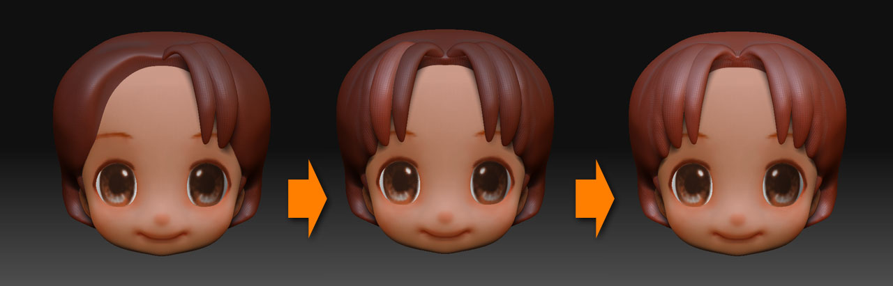 パーツをクローンしてミラーで反転させてたら、前髪を取り出したベースメッシュのSDivに全てのパーツのSDivを合わせ、インサートメッシュ