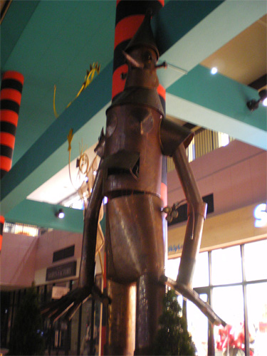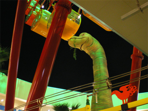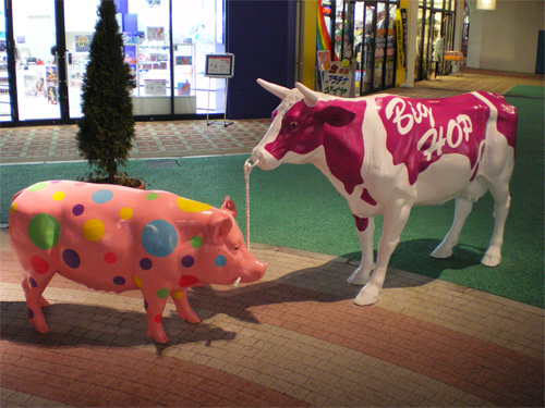 千葉ニュータウンに「ルイスと未来泥棒」の3D映画観に行ったついでに、巨大ホームセンターも見てくんべ!と思って進んでいったら、なんか街の様子(街が殆どなかったんですが)が変わってて、巨大ショッピングモールらしきものが2つ、線路の両側に出来ておりました・・・・・・・・・ プチバブルの象徴みたいな作りで、片方は建物の真ん中から観覧車が生えている・・・・・・・・・それがBIGHOPなのですが、あんまりすごいので中見てきました いずれ廃墟になってしまいそうなので写真もいっぱい撮っておきました! BIG HOP(ビッグホップ)ガーデンモール印西 ホーム http://www.bighop.jp/ 外から見るとこんな感じ 鍵穴状の建物(手前が円形)に観覧車がささってるみたいなの 入口ではキングコングがお出迎え 昔こういうの流行ましたよね~ 中庭の観覧車の横には恐竜が動いたり吼えたりしてる・・・・・・・・・・ 美味いよこの草!ってすすめてるんだきっと 恐竜のおなかには入れたりする となりでケバブ売ってたり・・・・・・・・・・ 素晴らしい彫刻にこのペイントをしてしまうオモチャ感覚がとても好きです 写真で見るとちっちゃいけど、これ原寸大の彫刻なので、かなりでかいです ブロックごとにテーマがあるらしく、ここはオズの魔法使い 巨大きょだ~いブリキ男 4mくらいだろうか? 最後に象のパレード サーカスらしい そんなBIGHOPで買ったアジあんな頭デカイヌ(そう書いてある) 最近はまっている点描風の仕上げで、塗装のヒントにもなりそうでした BIGHOPは、ただいまセール期間中です あ、話戻りますが、3D上映はすばらしいですよ! ワーナーマイカル系のシネコンでやってます CG作品は連続で3D上映やってますね CGの中に入れる感覚はとても不思議・・・・・・・
