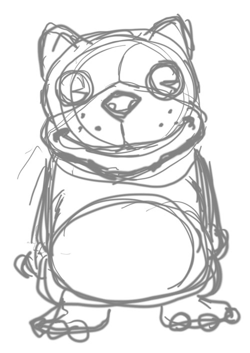 可愛いものとか苦手なので、ぬいぐるみ並べて猫の絵を描いていたら犬になりますた