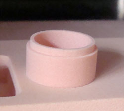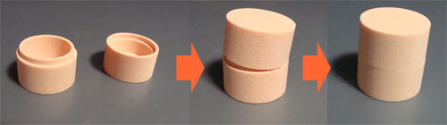 シチサンカメンさんに教えて頂いたローランド2.5Dを使って蓋付き容器を切削してみましたよ この方法は一度試してみたかったのですが、ちょうど2.5D向きの形状だったのでよかったです まず円柱をブロックから削りだして行くのですが、寸法をきっちり測っておけばライノで確認しながら材料の隅から隅まで使えそうなのがスバラシイ! 円柱を2本削り出したら、捨て板に円柱と同じ形に穴を開け、そこに差し込んで段差を彫ったり、円筒内部の肉を削ったりします 穴は外形線をそのまま使って、内側をパスで塗りつぶすだけで掘ってくれます ↓作業風景はこんな感じ(穴にはまっているのですが、分かりにくいですね・・・・・・・) 円形のパスで切削する工程を重ねて行くと形が見えてきます ↓上下のパーツが完成するとピッタリはまりました もたついてたので完成までに3時間位掛かってしまいましたが、慣れればもっとさくさく行きそうす しかしライノから直接切削できるのがなんか不思議です・・・・・・・・ 3Dデータを作って切削させているのではなく、ミルが通る道と深さを指定しているだけなので、簡単な形状で寸法が出てたりする場合に有効かと 多面切削用のブロック切削はローランド2.5Dが一番早そう・・・・・・ ライノとモデラはセットで考えると便利に使えそうですよー♪ 3D-ダウンロード-ローランドdg Rhinoceros PlugIn "Roland 2.5D for Rhinoceros 4.0 Ver.1.02" http://www.rolanddg.co.jp/download/3d/updater/rhino_pin_04.html