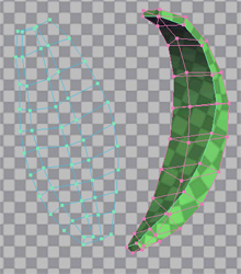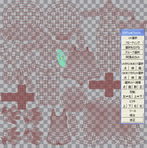 ↓こんな感じにミラーされた側のポリゴンをポチポチやっていくと重なっている(見た目には分からない)UVが選択されてゆきまする