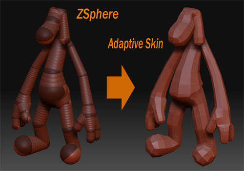 いったい押出し押出し何を言っているんだ?と思われそうなのですが・・・・・・・(汗) こんな感じにモデリング出来たらいいなぁと思ったんです これは10分くらいで作った物ですが、何も考えないで始めました 行き当たりばったりでもこれくらいコントロールできるのがZSphereのありがたいところなんですが、AdaptiveSkin化してしまうといい部分がそぎ落とされてしまうんです・・・・・・・・ 仕方ないので今まではZSphereの上にトポロジーライン引いて直接リトポしてたんですけど、これに代わる方法が何かないかなぁと・・・・・・・・ しかし色んなソフト弄ってZSphereに戻ってくるとオブジェクトの回転とかも安定してて使いやすい・・・・・・・・ 後でスフィア追加したり削除したりも楽に出来るし、よく考えられてる物なのですが最後に使いにくくなるのです~