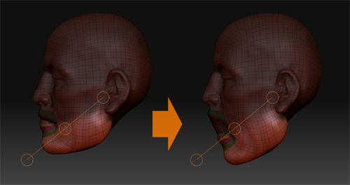 これで気をつけたいのは、グループの変更とは構わないのですが、更にエッジループとかしてポリゴンが追加されたりすると、3Dレイヤーが使い物にならなくなることでしょうか 途中からややこしくなってますが、別に口じゃなくてもOKです