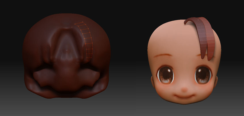 もう一回ベースメッシュに戻ってTool->Topology->Delete Topo して同様の作業を繰り返して何枚か前髪用の短冊を作ったりしてもよし