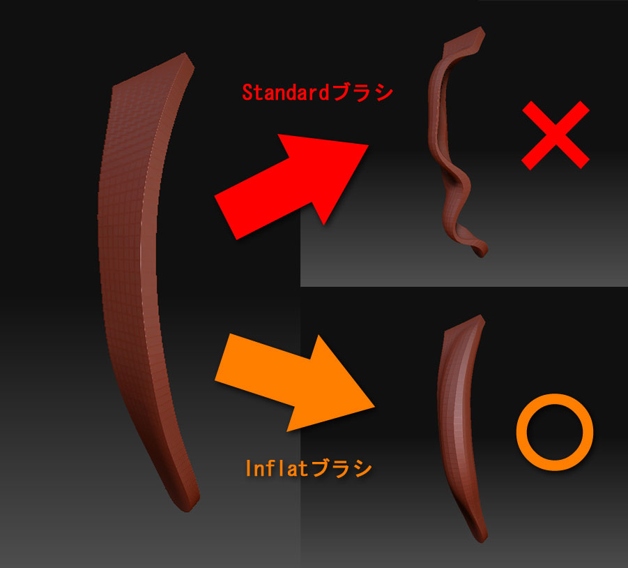 ディバイドしてある程度目を細かくしたら、Inflatブラシで膨らましてやりましょう
