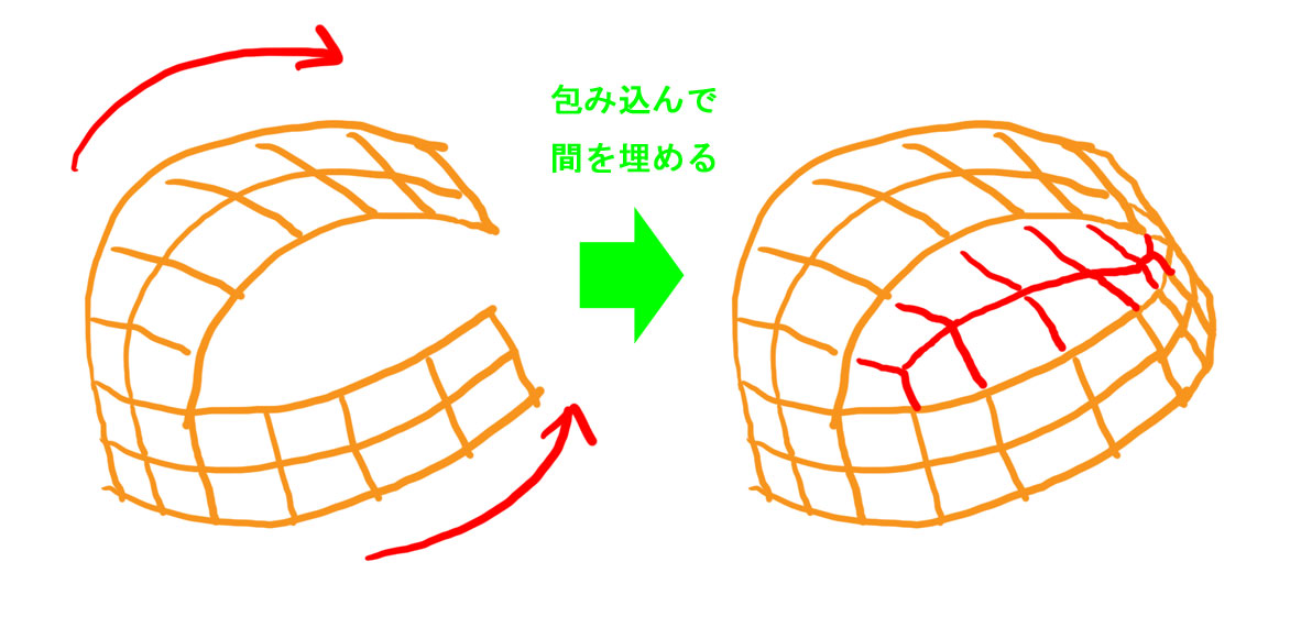 悩んでる人も居そうなので、簡単な包み方とか・・・・・・・ 簡略化して描くとこんな感じ 帯で囲んで間を四角で埋めるっす 実際にやるとこんな感じ 結構楽な方法だと思う
