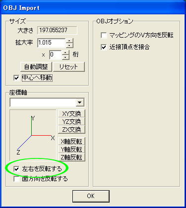 何にもしないでそのままエクスポートして開けば大丈夫になった♪ こりゃ楽チンだ~* と思ったら・・・・・・・・・・・・・・・ 左右が逆になってる~ 今度からはこうなるのかぁ・・・・・・・・・ メタセコで開く時は、「左右を反転する」にチェックを入れてあげましょう