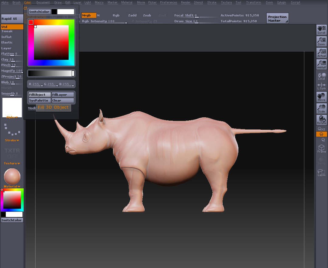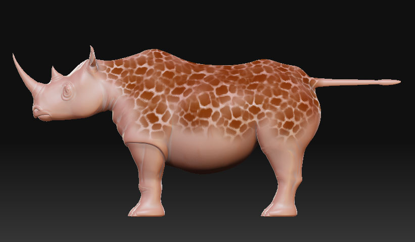 またあつみさんから良いこと教わってしまったw アルファはポリペイントにも使えるという話なのですが まずは起動画面の佐井くんをDevideしてSDiv4くらいに マテリアルをRS_Sculpy(なんでもいいよ)に変更し Zaddをオフにし Mrgbをオンにして Color->FillObject AlphaをBrush59とかにして、StrokeをDragRectに マウスをドラッグすればあっという間にきりんさん♪ ギザカワユス こんなのも遊びで作れるようになったぞV