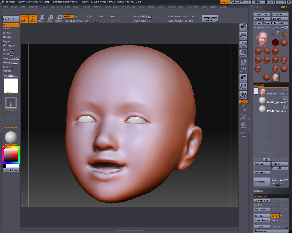 こえ~・・・・・・・・・・・・・・・・・・・・・ 昨日は読み込んだデータを片っ端から左右対称形に修正したり、細部を作り直したり、いつの間にか夜中になっておりますた・・・・・・・・・・・・・・(でも楽しいよw) CGを立体出力したり、原型をCGにしてみて感じたことは、実際に考えている形と出方が少し違うということ こういうのは慣れもあるのかも知れないけど、商品原型やる場合はやっぱり試作品を出力して一旦形状を確認したりする作業が必要になりそう(部分でも) あとZBrush3は絶対必要になりますw