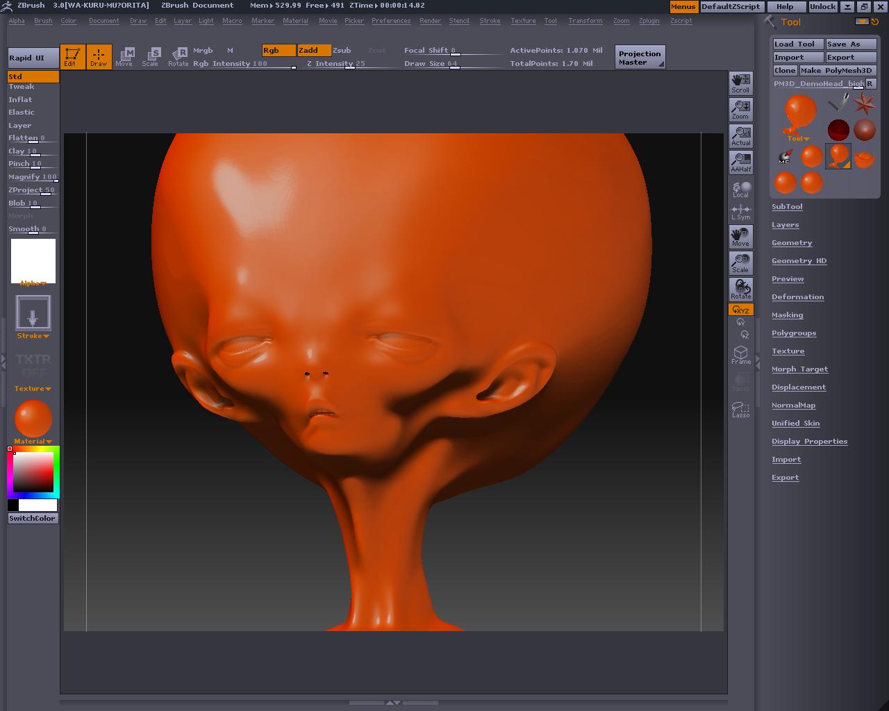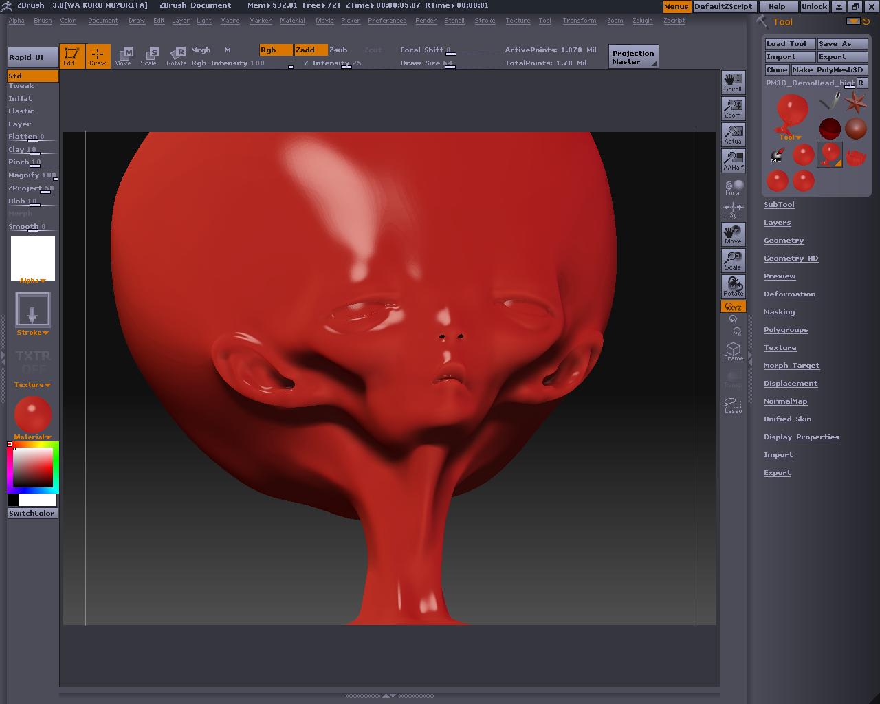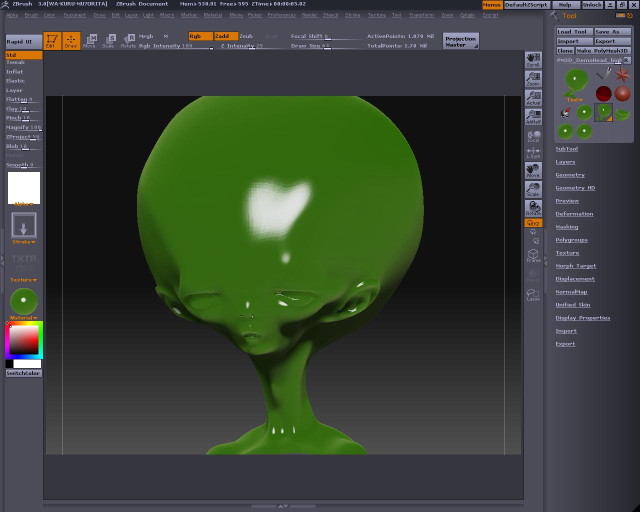 目とか色変わっちゃうのやだから、プラグインMake1Meshでサブツールをまとめたです