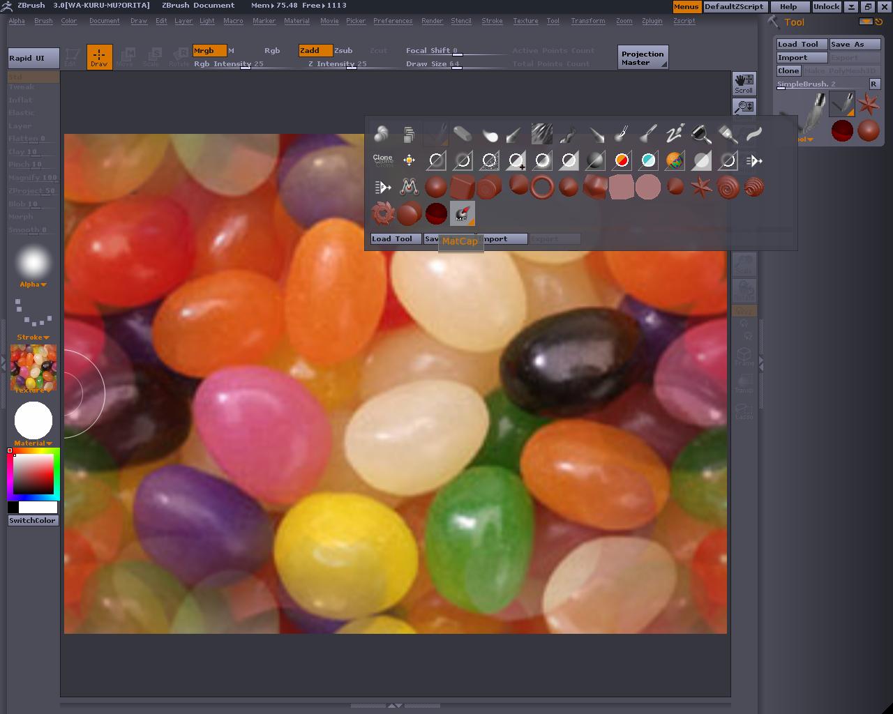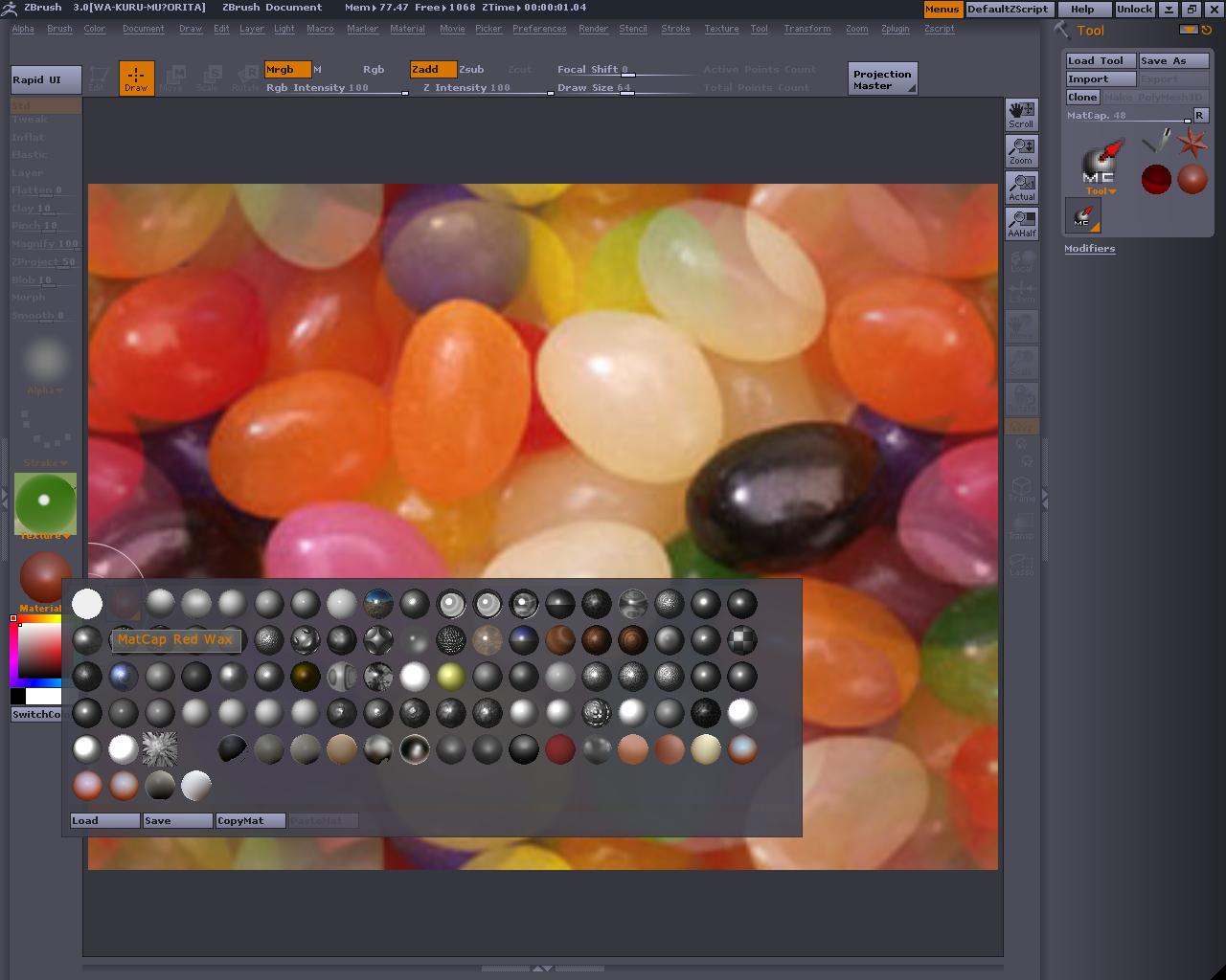 ※MatCapはMaterial Texture用のテクスチャーを作成するツールなので、Material Textureスロットがない、Fastshader等ではMatCapツールでキャプチャーした画像がTextureスロットに出力されてしまうそうです