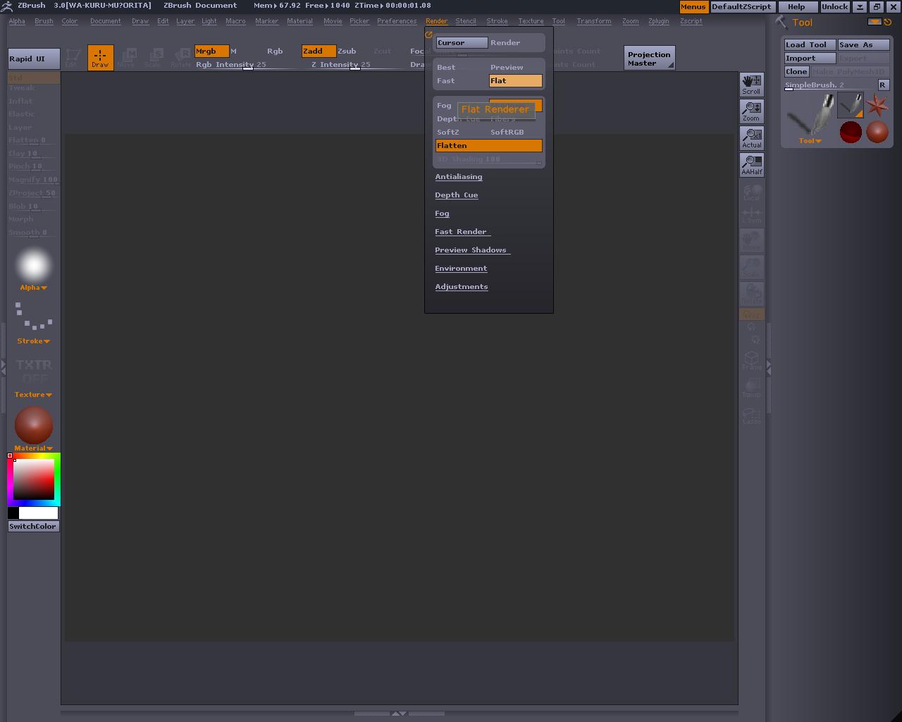 まず最初にRenderをPreviewからFlatに切り替えておきます