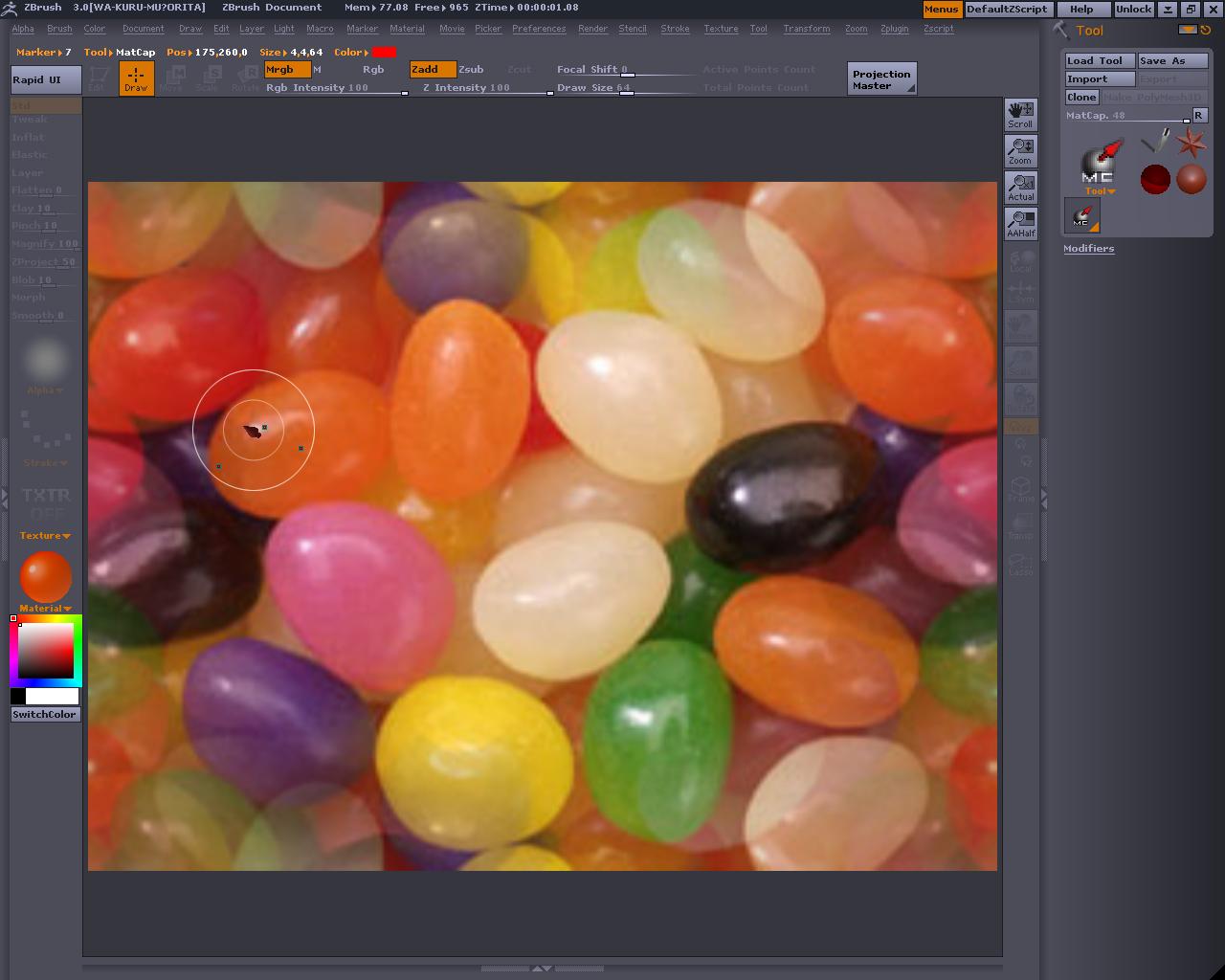 ※この場合はグミの質感を取り込みたいだけなので、写真はその都度取り替えてください