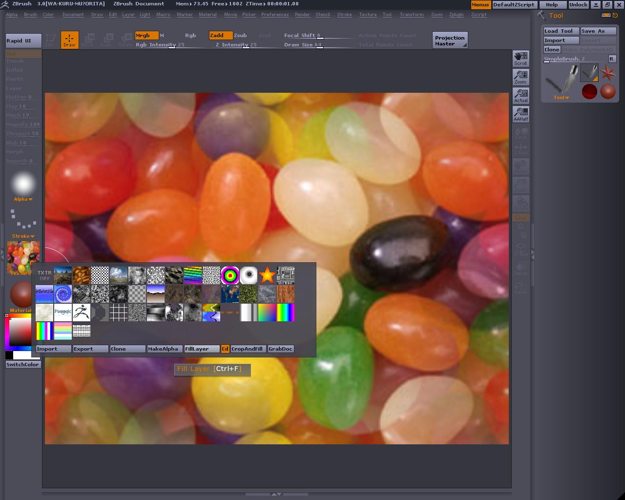 FillLayer をクリックすると選択したテクスチャーが背景に広がります