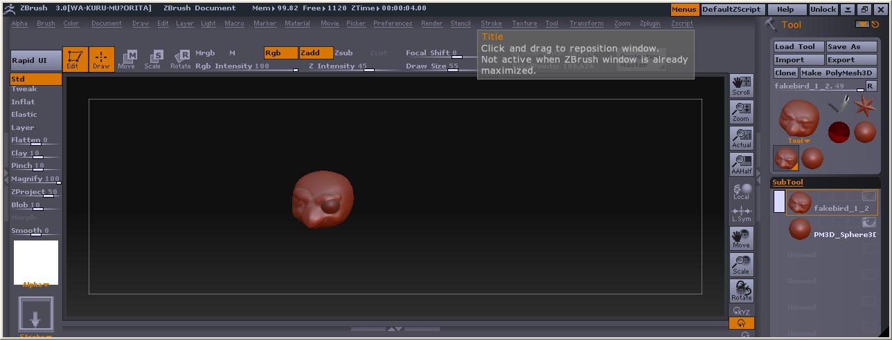 今弄っててたまたま気が付いた・・・・・・・・・・・orz 今まで最大化ボタン、縮小ボタンをきっちり押してましたよ・・・・・・・・ ZBrushは縦方向には縮められるのね と思ったら、横にも縮みました・・・・・・・・・orz
