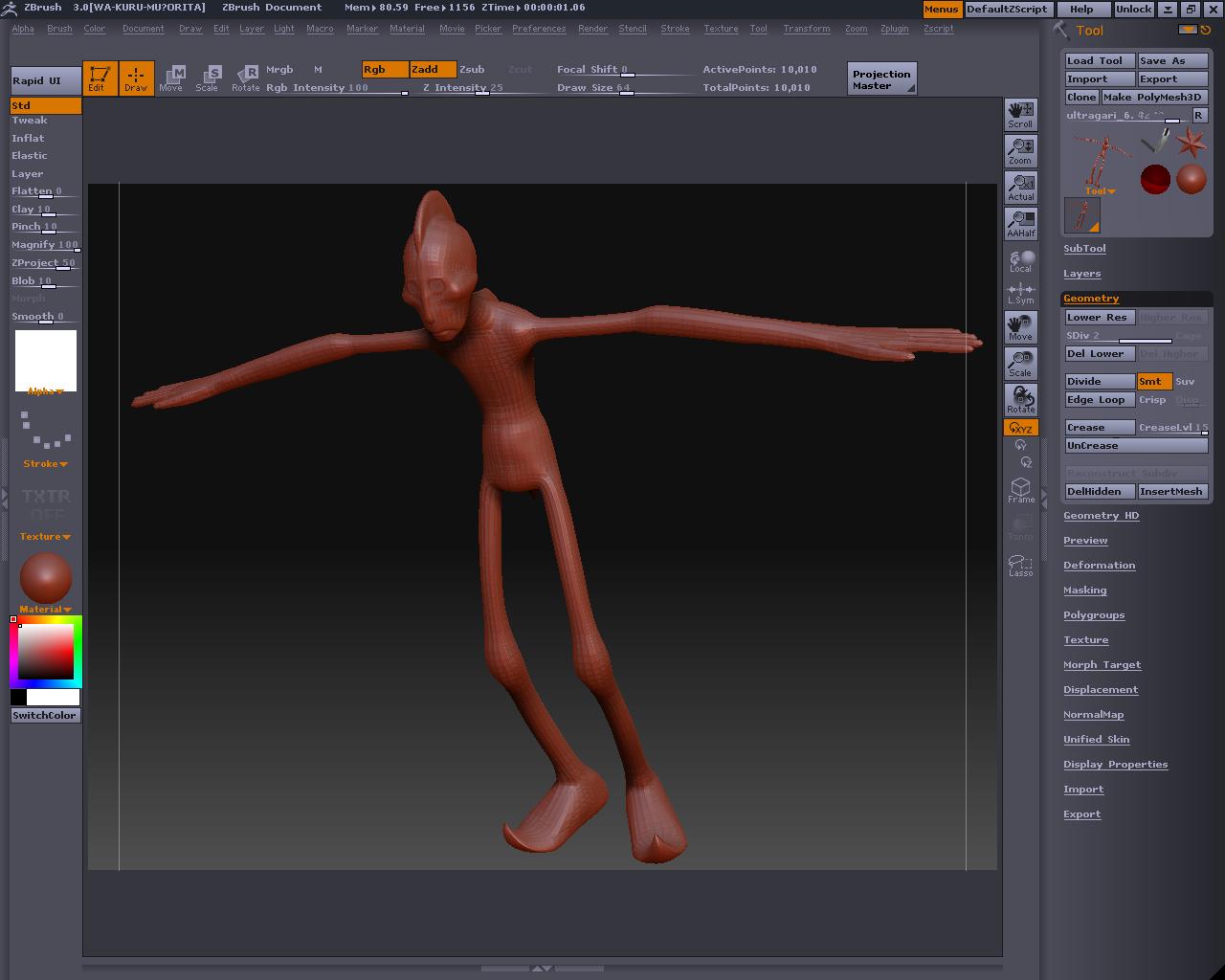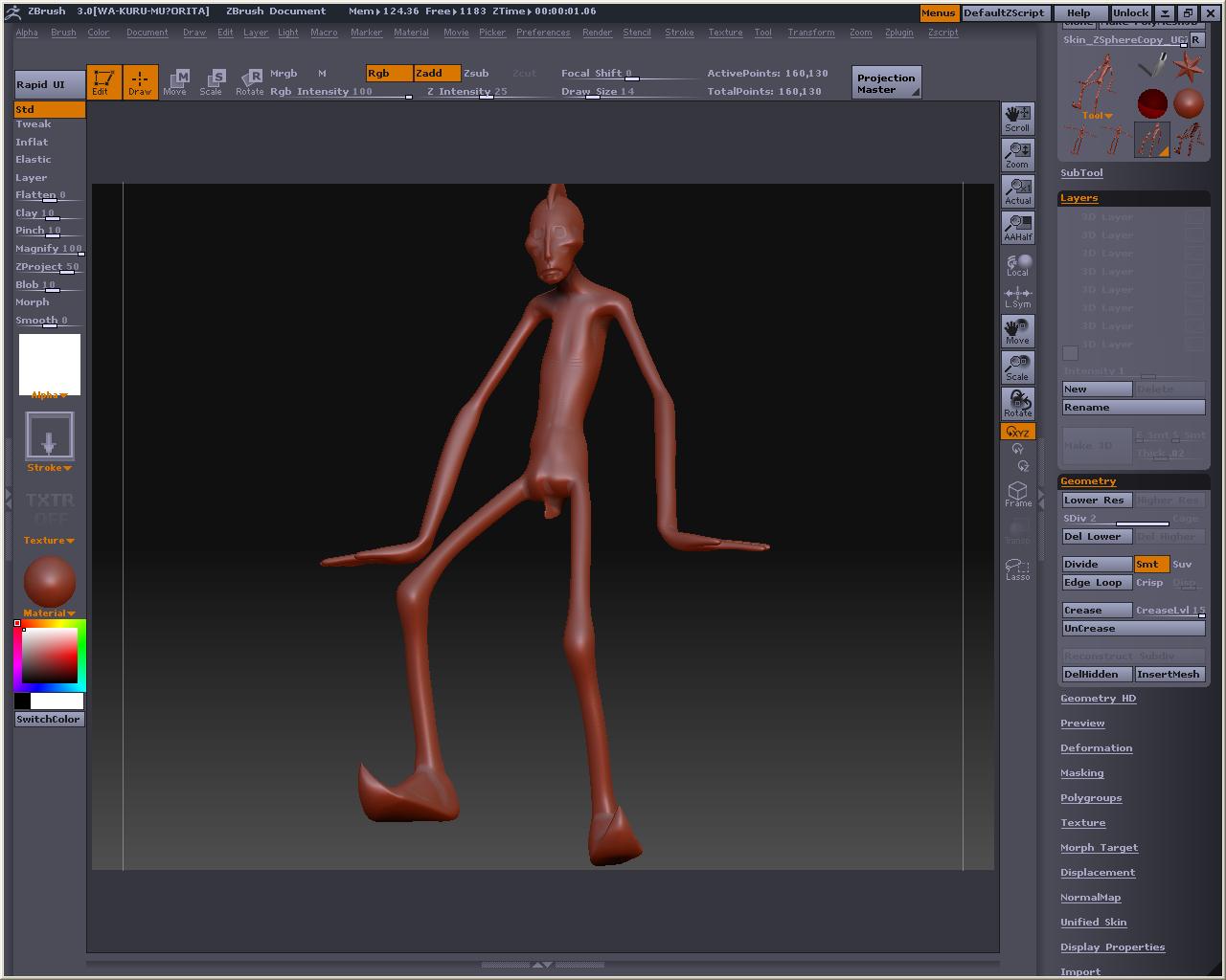 ポーズとった後、スキンを作って保存したら、もう一回ポーズつけたリグに戻って、Bendを押すとポーズをつける前の状態に戻ります ここでRigging>Deleteボタンを押すと、最初にSelectしたポリメッシュが削除され、ボーンだけ残ります ここに再度別のポリメッシュをSelectしてやれば人型のボーンとかはサイズ変えたりして使い回しが出来ます
